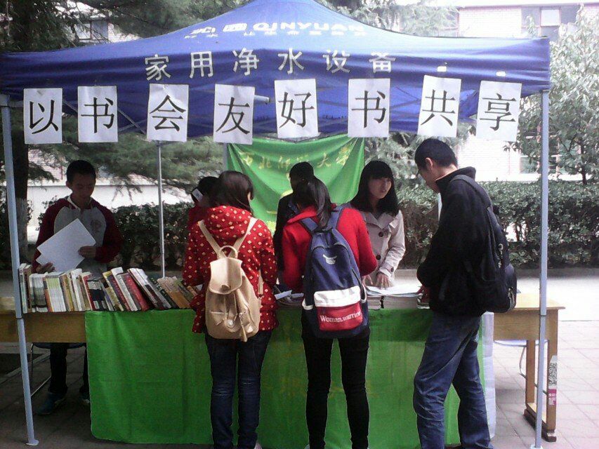为进一步营造校园文化氛围,丰富同学们的课外知识,加强各个学院、同学之间的交流。我社于 活动内容主要分为两个部分。一是书籍收入。活动以书籍收入为开端,来自各个学院的同学将自己喜爱的图书纷纷捐赠出来,以此与他人共享书籍,并交到志趣相同的朋友。二是图书借出。在校所有同学都可以无偿借阅书籍一周,而且同学们可以在便利贴上写下读书的心得体会,借此与书友交流。 在温暖的阳光中,书友们尽情享受着阅读带来的乐趣,相信在这里他们都收获了沉甸甸的“一秋果实”。本次活动将为同学们提供一个较好的交流平台,有利于拉近同学之间的距离。我社希望能够通过这次活动,使同学们养成主动阅读的良好习惯,营造书香四溢的文化氛围!