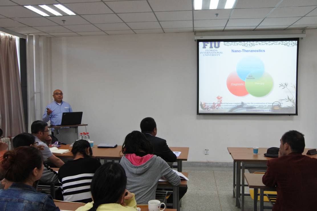 2016年5月9日,应甘肃省生物电化学与环境分析重点实验室,甘肃省电化学技术与纳米器件工程实验室邀请,佛罗里达国际大学(Florida International University)李晨钟(Chen-Zhong Li)教授来我校作学术交流,并作了题为《Bio-electronics For Theranostics》的学术报告。化学化工学院教师、研究生40余人参加了报告会。报告会由生物电化学与环境分析重点实验室主任卢小泉教授主持。
