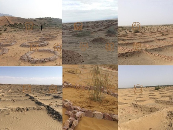 图5土基材料组合沙障分流疏导固定流沙 图6土基材料组合沙障防风蚀和水土流失