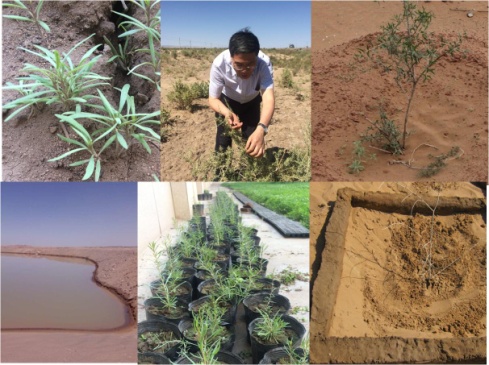 图1 土基材料辅助沙生植物保护 图2 土基材料辅助沙生植物种植