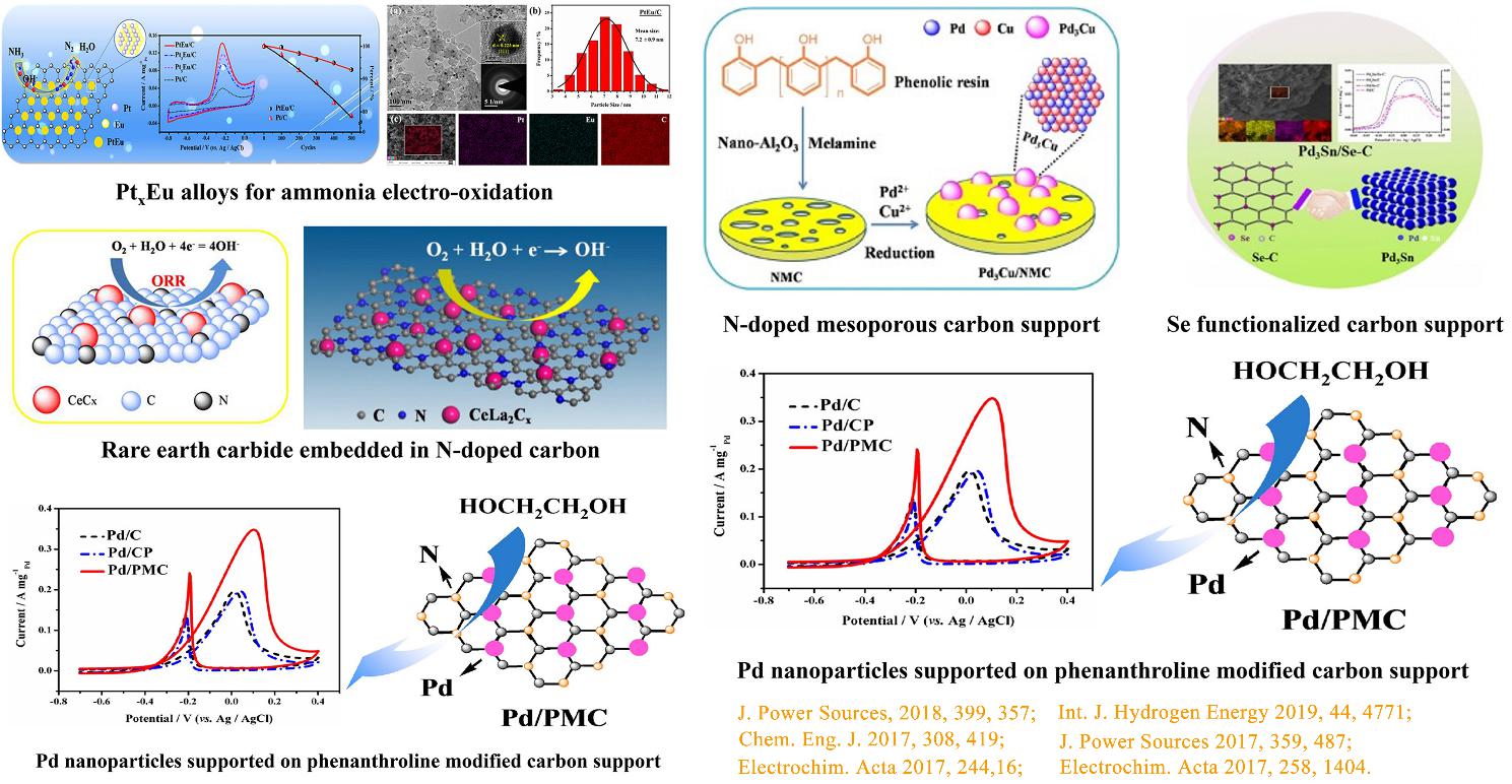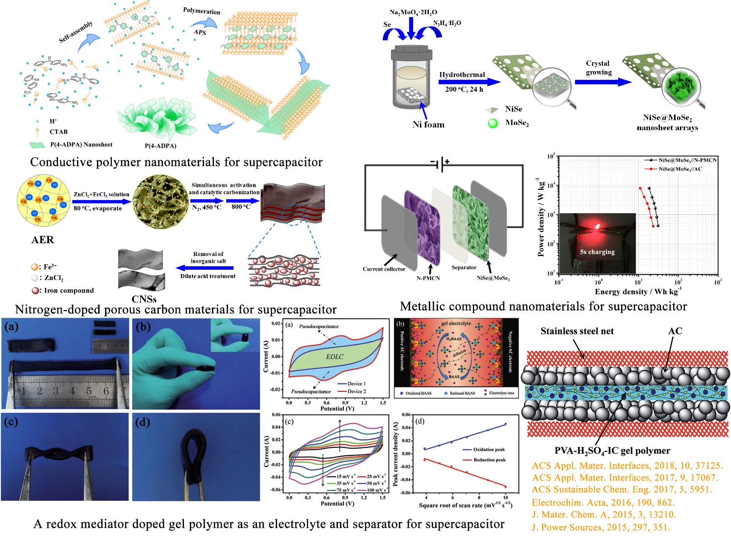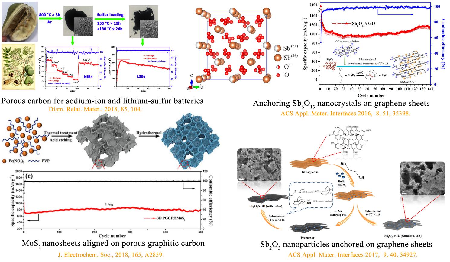 5年,生态功能高分子材料课题组在新能源转换和存储(燃料电池、锂/钠离子电池和超级电容器)材料和高性能器件的设计组装方面取得一系列进展。研究内容包括制备系列氮硼/硫双掺杂的碳材料和稀土基复合材料;还原氧化石墨烯-金属化合物(Sb6O13Sb2O3MoS2等)纳米复合材料;具有可控形貌的新型导电聚合物、金属氧(氢氧)化物、金属硫族化合物和具有高效氧化还原性质的凝胶电解质等材料相关成果在J. Mater. Chem. AACS Appl. Mater. Interfaces等国际学术刊物上发表SCI论文100余篇(其中一区论文30篇)。