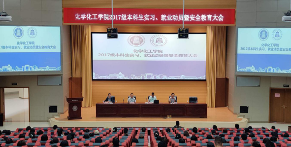 2020年9月4日上午10:00,化学化工学院2017级本科生实习就业动员暨安全教育大会在新校区毅然报告厅如期举行。学院党委书记赵辉、学院副院长薛中华、副院长宋鹏飞出席此次会议并发表讲话,2017级班主任以及2017级全体本科生参加了此次会议。会议由学院党委副书记陈芳主持。
