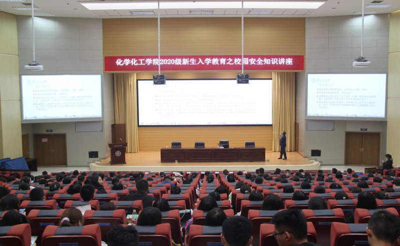 2020年9月14日上午10:00,化学化工学院2020级新生入学教育之校园安全知识讲座在新校区毅然报告厅如期举行。学校武保处副处长石晓东、团委专职辅导员张震、2020级全体研究生以及本科生参加了此次讲座。会议由学院团委专职辅导员王千东主持。