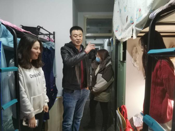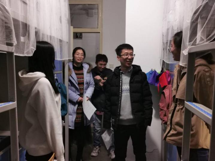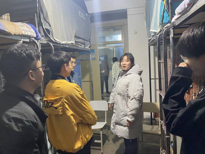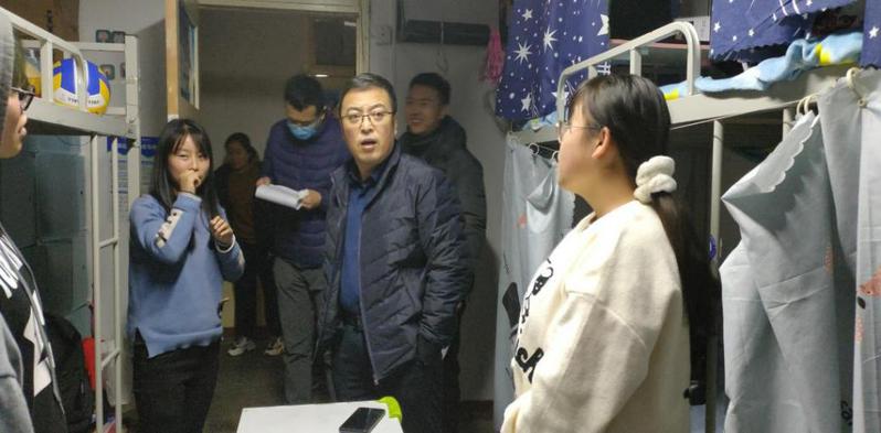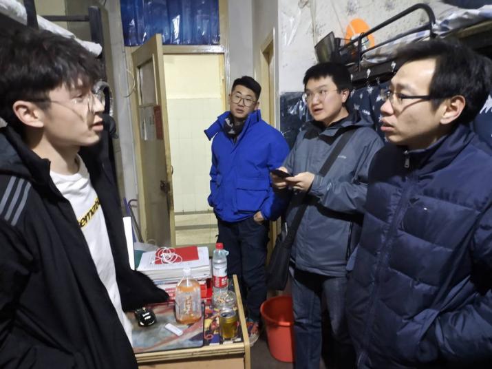 走访过程中,学院领导和老师详细询问了同学们的学习生活情况,对学生宿舍的卫生、安全、文明建设等提出具体要求,叮嘱同学们要注重疫情期间的宿舍卫生及日常宿舍安全,严防各类诈骗,同时要求同学们要做好期末复习规划,并鼓励大四考研的同学努力学习,争取考一个好成绩。学院党委书记赵辉向同学们着重强调宿舍安全问题以及学习和生活习惯的养成,并希望同学们与老师们多进行沟通交流,鼓励同学们积极参与学校、学院组织的各类文体活动,珍惜大学美好而短暂的时光。院长权正军在走访过程中询问了学生的住宿情况、学习情况以及对自己的大学生活有何规划等问题,同学们就住宿、考研、就业等方面提出了具体诉求。辅导员对学生宿舍需要解决的问题逐一进行了记录,随后与公寓工作人员进行问题反馈和处理。