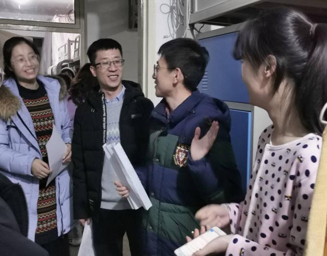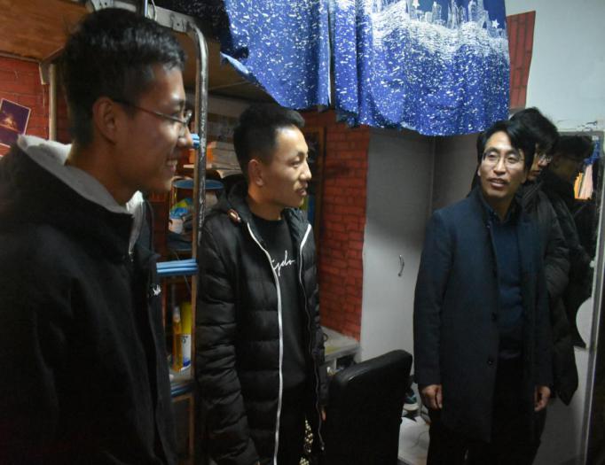 为深入了解学生生活学习情况,加强学生宿舍安全教育,化学化工学院组织学院领导、研究生秘书、导师、班主任和辅导员于12月13日上午与晚上分别对研究生宿舍及本科生宿舍进行了走访。学院党委书记赵辉、院长权正军,副院长薛中华、宋鹏飞,党委副书记陈芳、正处级辅导员孟汇海、研究生秘书郭昊、研究生秘书曲文娟、全体本科生班主任及辅导员参加了此次走访活动。