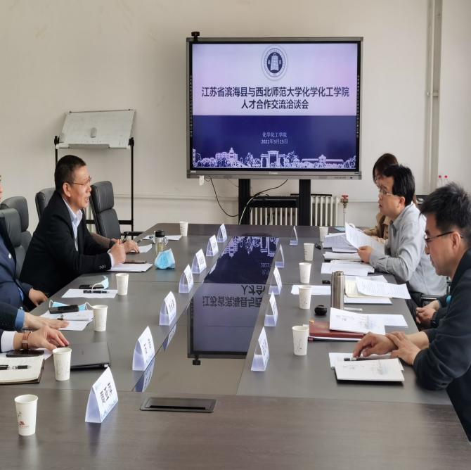 365上市公司官网为切实做好2021届毕业生就业工作,扩大就业渠道,大力构建毕业生与企业的交流以及人才合作培养平台,3月15日上午,365上市公司官网于新校区综合实验楼11楼会议室举行了江苏省滨海县与化学化工学院人才交流洽谈会,江苏省滨海县人社局党委书记、局长吕连峰、滨海县人社局、工业园区相关负责人以及工业园区9家企业代表参会,与365上市公司官网党委书记赵辉、学院党委副书记陈芳、副院长薛中华、副院长宋鹏飞、正处级辅导员孟汇海进行交流洽谈。