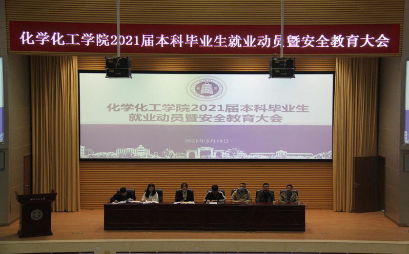 2021年3月18日上午,化学化工学院举办了2021届本科毕业生就业动员暨安全教育大会。2017级全体班主任、辅导员及2017级全体本科生参加此次会议。会议由学院党委副书记陈芳主持。