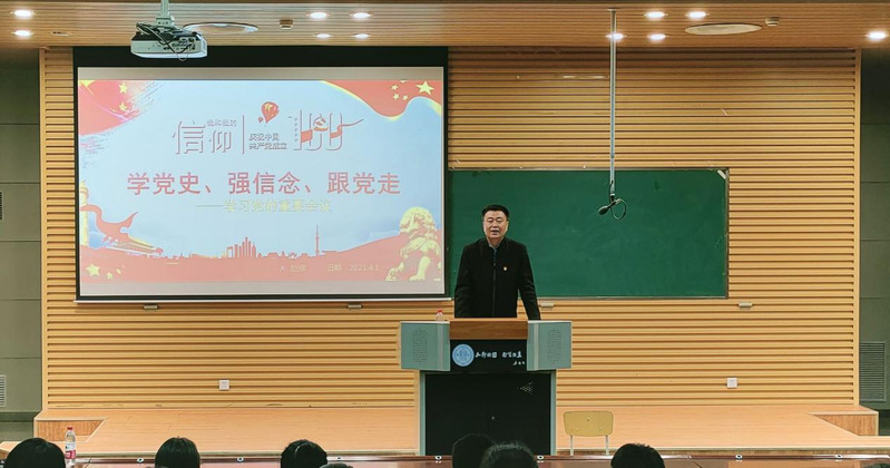 2021年4月1日晚,学院在新校区毅然报告二厅召开“学党史,强信念,跟党走”红色主题教育活动。学院党委书记赵辉作主题报告,学院全体团学干部参加此次活动。会议由学院专职辅导员王千东主持。