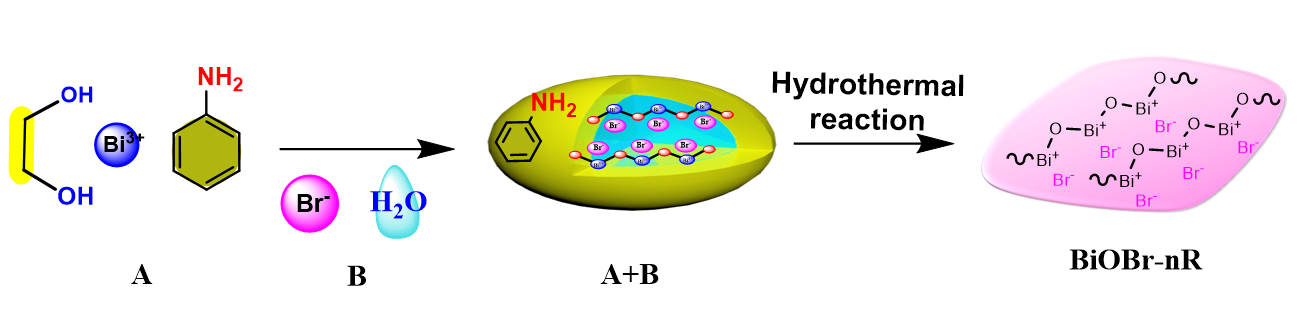 其次,利用高分子效应,在油包水乳液中包覆BiOBr前驱体溶液,再通过水热反应构建超薄纳米圆片(Scheme 4)。并将其应用于有机物的降解,在提升降解率的同时,还提高了传统BiOBr的循环稳定性。最后通过M-K电负性定义理论方程计算了超薄纳米圆片的带隙能和导带能,并结合自由基捕获实验探讨了BiOBr超薄纳米圆片的降解机理。利用高分子效应调控BiOBr的尺寸,构筑了比表面积更大且具有光降解活性的超薄纳米圆片,为设计和制备高效、可回收、高光响应的光催化材料净化废水提供了一些新思路。成果以论文“Construction of UiO-66@Flower-like MoS2 hybrids through electrostatically induced self-assembly with enhanced photodegradation activity towards Lomefloxacin Chemosphere发表在Separation and Purification Technology, 2021, 265: 118486(工程I区,IF7.312)。高娣(硕士研究生)和张亚苹(博士研究生)为共同第一作者。另一篇论文“Facile Construction of BiOBr Ultra-thin Nano-roundels for Dramatically Enhancing Photocatalytic Activity”发表在Journal of Environmental Management, 2021, 299, 113636(环境科学与生态学2区,IF6.79)。第一作者张亚苹(博士研究生)。