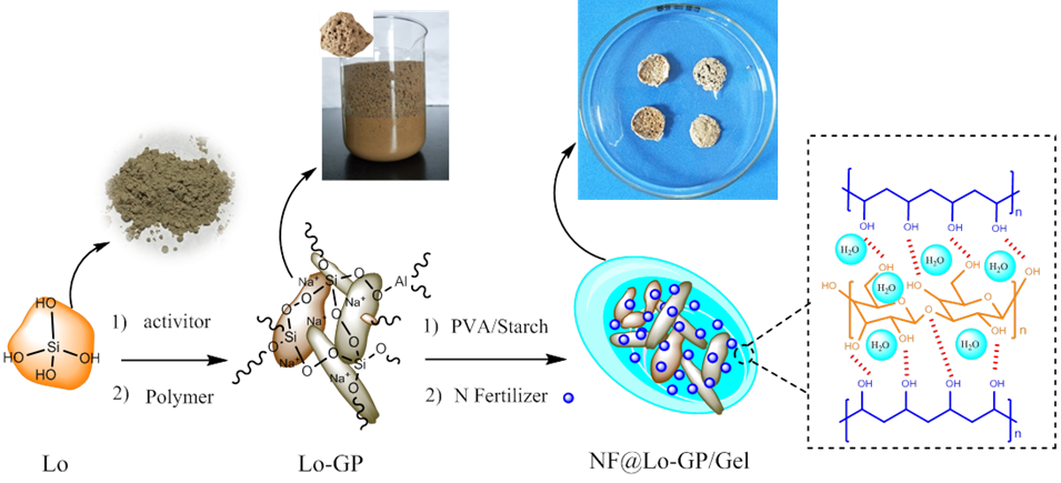 以廉价的黄土微粒(Lo)为原料,采用碱激发法制备多孔黄土基地质聚合物(Lo-GP),进一步以Lo-GP作为农业肥料载体,以天然高分子、生物相容性高分子为凝胶包膜材料,将尿素进行包封,通过硼酸作为交联剂形成凝胶体,合成了一种廉价环保且能缓释肥料的多孔地质聚合物复合凝胶材料。发现其具有吸水、保水性能、土壤酸碱性调节性能;对氮肥具有较好的缓释效果,而且对植物具有促进生长作用。因此可以推广应用于农业肥料缓释中。成果论文“Porous Geopolymer Based Ecofriendly Multifunctional Slow-Release Fertilizers for Promoting Plant Growth”发表在Colloids and Surfaces A: Physicochemical and Engineering Aspects, 2021, 631. 167646(化学2区,IF4.53)。闫海彦、朱新华为共同第一作者(硕士研究生)。