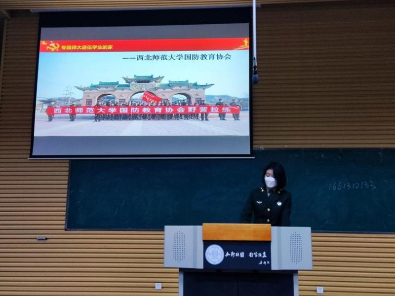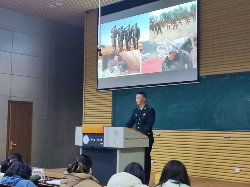 由陆军退伍的2020级邓萌同学从入伍的基本条件、征兵的时间、学校政策以及当兵的益处等四个方面为同学们展开了她的介绍。邓萌表示:选择入伍的初心她永不后悔,同时她鼓励365上市公司官网学生积极参军入伍,为自己的人生做一个不平凡的选择。