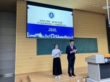为深入学习宣传贯彻党的二十大精神,持续用党的科学理论武装青年,用党的初心使命感召青年,按照校团委有关工作部署要求,学院于2023年4月25日19:30,在新校区毅然报告一厅举办化学化工学院“奋斗者·正青春” 学习宣传贯彻党的二十大精神主题演讲比赛。团委书记杨帆老师、辅导员徐召老师、梁丽洁老师、团委副书记尹启燕以及8名学生代表作为评委,各班团140余人参加本此活动。