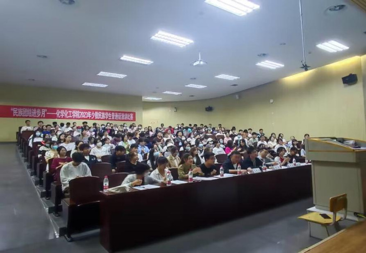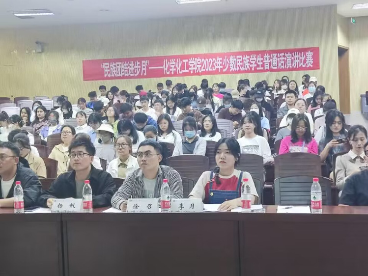 为深入贯彻落实习近平总书记关于加强和改进民族工作的重要思想,进一步凝聚民族团结进步强大共识,按照学校有关工作部署要求,学院于2023年5月18日晚,在新校区毅然报告一厅举办化学化工学院“民族团结进步月”——2023年少数民族学生普通话演讲比赛。本次演讲比赛由团委书记杨帆、辅导员马晓炜、徐召、李月、团委学生会主席团成员担任评委,各班团180余人参加本此活动。
