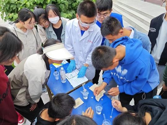 当日下午,实践团队与合作一中联合举办科普展演活动,此次活动由指导教师姚虹致辞。活动中,实践队成员通过讲解和现场实物演示在场学生生动地解释了“瓷器内在变色原理”“生活中的表面张力”“化学视角中的摩擦力”以及“保密书写”等科学原理和现象,让在场学生在轻松愉快的氛围中获得新的学习体验实践队成员寄语合作一中学子,希望他们在未来的学习和发展中能够更加自信、积极地面对各种挑战,并为构建科技强国贡献积极力量。