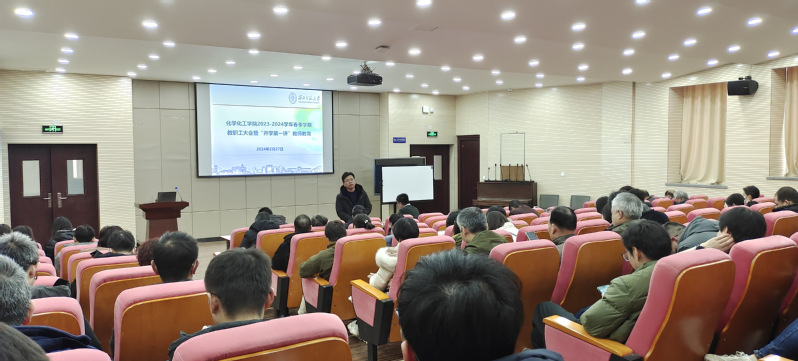 2024年春季学期教职工大会主要由本科教育教学审核评估工作启动会、2024年学院重点工作部署会和“开学第一讲”教师教育活动三部分组成。会议第一阶段,兰州理工大学石油化工学院李锴老师针对即将全面启动的本科教学评估,从“方案出台背景及意义”、“指标体系内涵解读”、“审核评估工作程序”、“自评报告撰写说明”、“审核评估工作汇报”等五个方面为全院教师做了详尽深入的讲解,为审核评估顺利开展奠定了思想基础。
