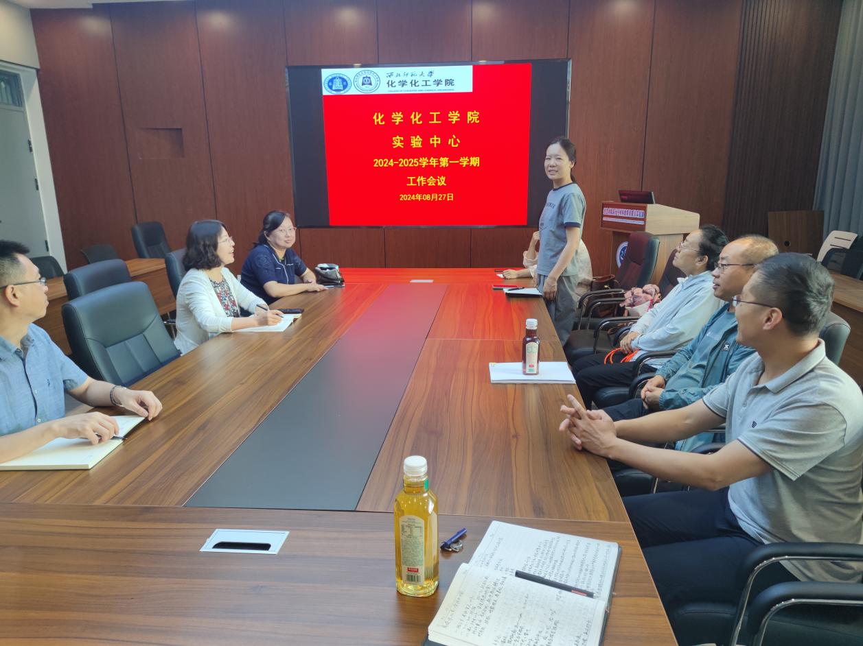 2024年8月27日上午,化学化工学院实验中心在开物楼E区教师活动中心召开了2024-2025学年度秋季学期工作会议。学院党委书记王秀珍、副院长黄静伟及实验中心全体工作人员参加会议。会议由实验中心主任李岩主持。