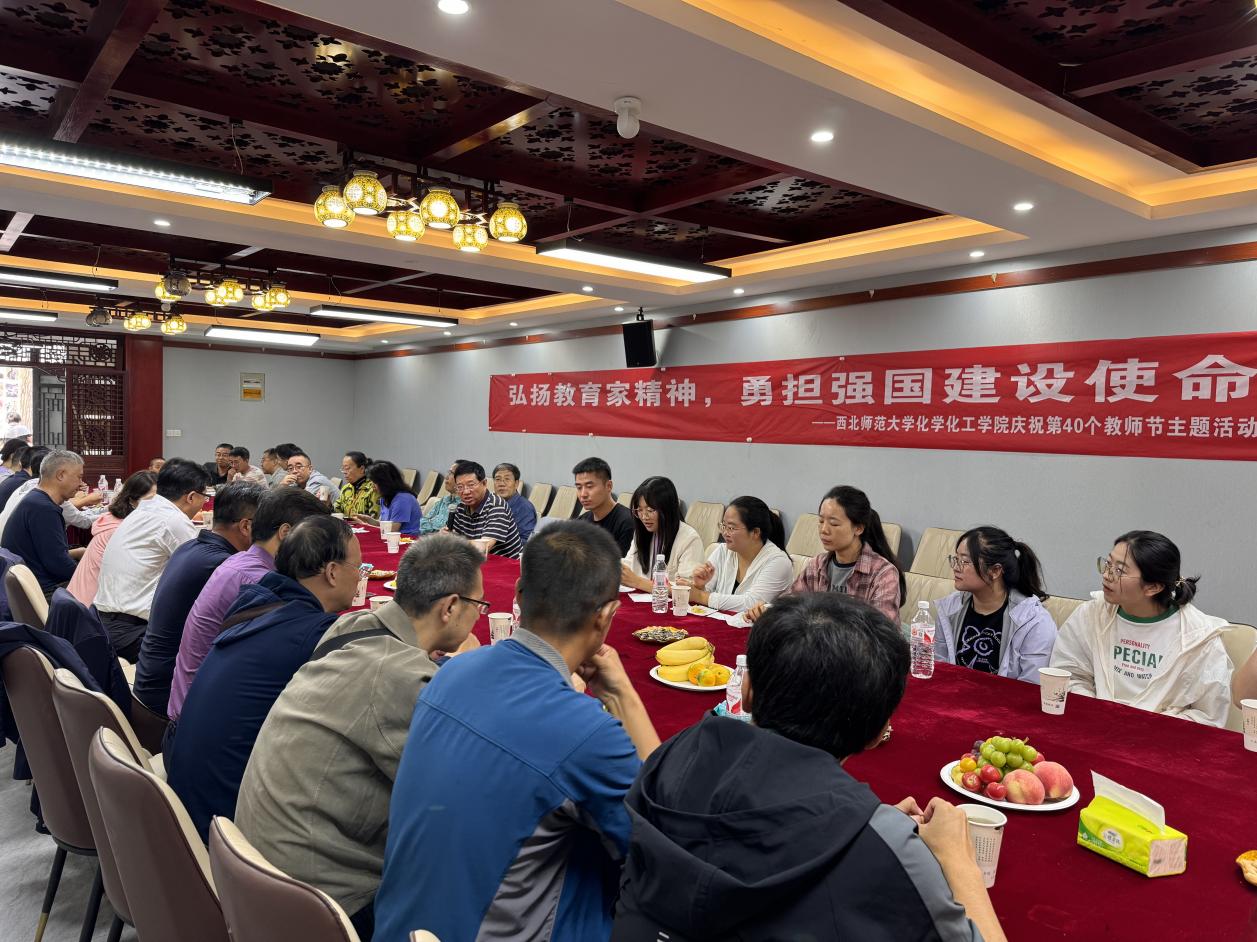 为进一步促进教师身心健康、激发工作热情、展现积极向上的精神风貌,增强学院凝聚力和向心力、树立良好院风,2024年9月7日,化学化工学院组织了一次别开生面的庆祝第40个教师节主题活动。活动以“弘扬教育家精神 勇担强国建设使命”为主题,充分发挥党建促业务的引领作用,以“主题党日活动+师德教育研讨”形式,开展了健步走活动和交流座谈会,学院全体教职工参加了活动。