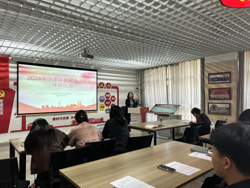 为切实做好入党积极分子的培养教育工作,夯实入党积极分子的理论基础,化学化工学院于2024年10月12日召开第144期入党积极分子培训班。学院党委书记王秀珍、副书记杨倩,党务办公室老师及55名入党积极分子参加会议。