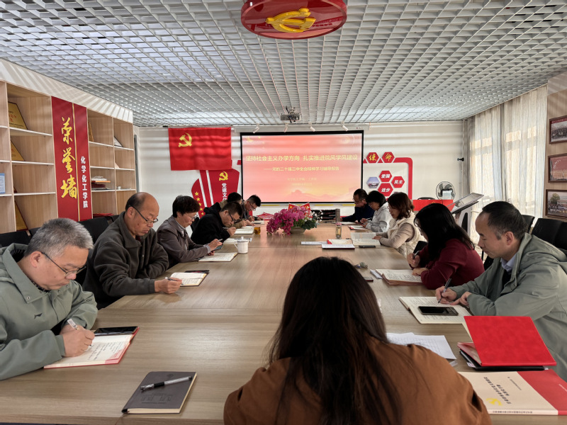 1023日,学院召开党委理论学习中心组(扩大)集体学习会,党委委员、学院领导班子成员、各党支部书记参加学习,党委书记王秀珍主持会议。