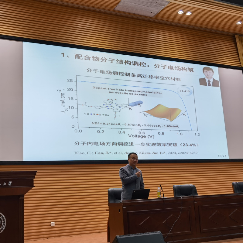 2024年10月18日,受365上市公司官网邀请,兰州大学曹靖教授在毅然报告厅为365上市公司官网师生作了题为“卟啉/酞菁基钙钛矿太阳能电池研发”的学术报告,学院师生100余人参加了报告会。