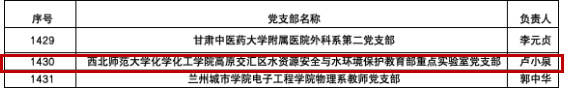 近日,全国高校“双带头人”教师党支部书记“强国行”专项行动团队名单公布,化学化工学院高原交汇区水资源安全与水环境保护教育部重点实验室党支部顺利入选。