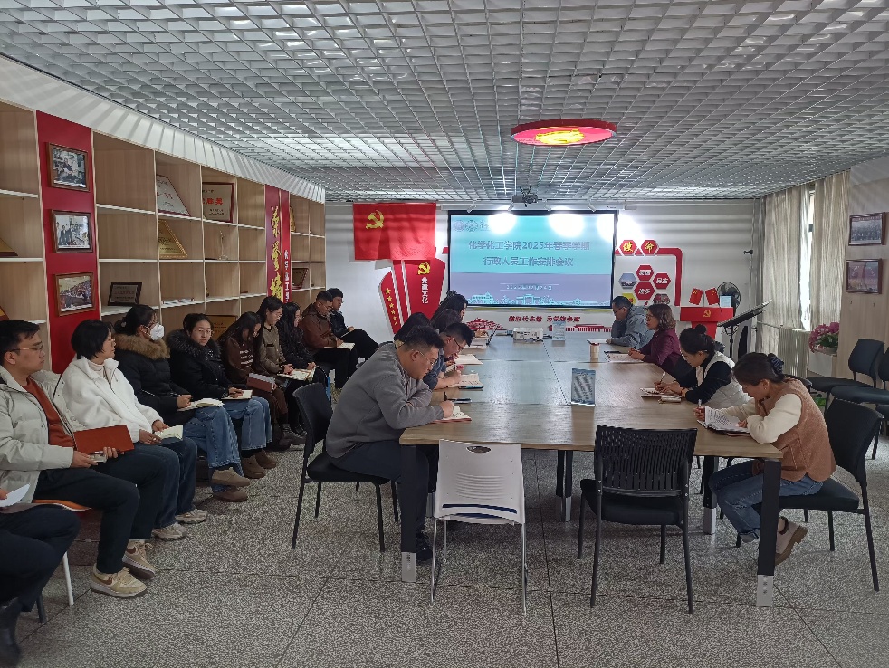 2025224日下午,化学化工学院在开物楼1209会议室召开了2025年春季学期行政管理人员工作会议。会议由党委书记王秀珍同志主持,学院全体行政管理人员及新入职教师参加会议。