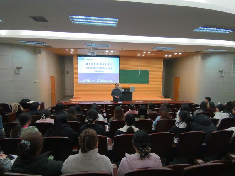 为确保2026届毕业生实习工作顺利进行,并在实习期间对职业生涯和个人发展明确目标、做好规划,3月5日下午,化学化工学院在毅然报告二厅召开“促文明养成,创优良学风”系列活动之2026届实习动员大会暨考研动员大会。全体2026届本科生参会学习。