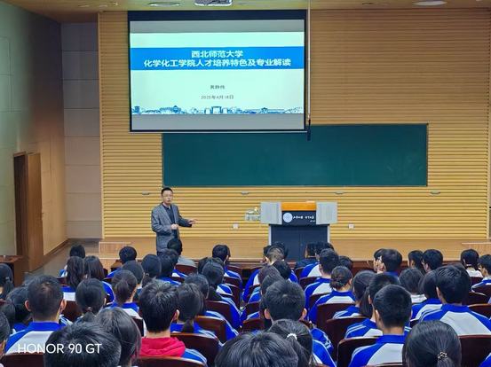 随后,研学队伍转至知行校区文心楼报告一厅。化学化工学院副院长黄静伟围绕学院特色专业、人才培养体系及科研创新成果,为师生们带来了一场生动的招生宣传讲座。通过互动问答,学生们对化学、材料科学、化工等学科的应用前景有了更深刻的认识,不少同学表示对未来的专业选择有了新思考。