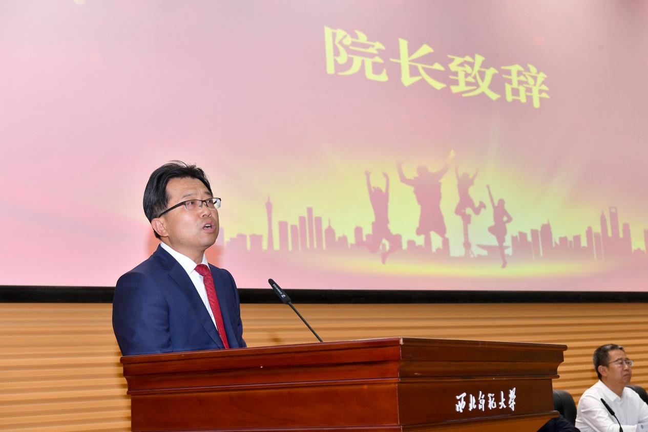 典礼在中华人民共和国国歌中正式拉开序幕。学院院长宋鹏飞发表了热情洋溢且饱含深情的致辞。宋鹏飞在致辞中全面回顾了2025届毕业生在校期间的成长历程。围绕“起点”“简单”和“梦想”三个关键词对毕业生进行了殷切嘱托,希望全体毕业生将在校所学的专业知识与实践技能转化为未来前行的动力,在今后的学习工作中始终保持对科学的执着,在更广阔的领域探索创新,铸就辉煌人生。