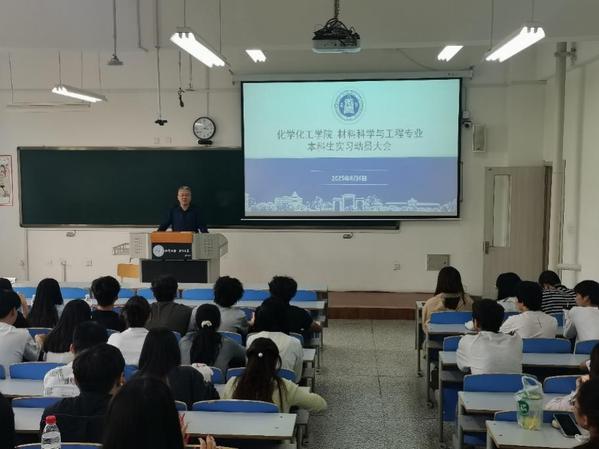 为扎实推进本科生实习工作,66日下午,学院在知行校区文心楼302教室召开2025年度材料科学与工程专业本科生实习动员大会。学院副院长黄静伟、专业负责人周小中、曾巍出席会议并作动员讲话,2022级、2023级和2024级班主任徐蓉年、丁文斌、张晓婷以及2022级、2023级和2024级材料科学与工程专业本科生参加会议。