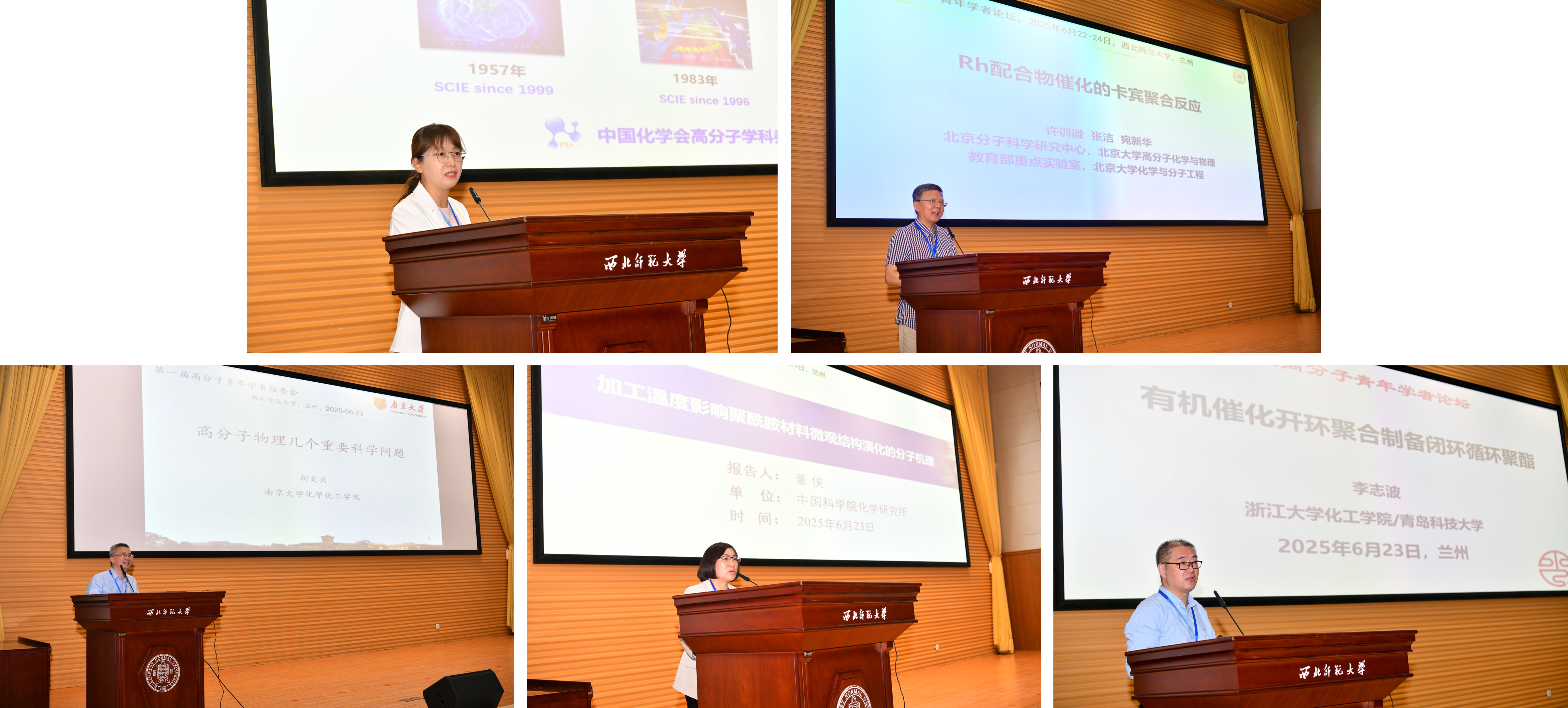6月23日下午至24日,来自高分子三刊编辑部黄英娟主任、北京大学宛新华教授、浙江大学李志波教授、南京大学胡文兵教授、中科院化学研究所董侠研究员作了大会报告。来自中科院化学研究所、北京大学、四川大学、山东大学、南开大学、中国科学院上海有机化学等科研院所的32位青年学者作了分会报告。