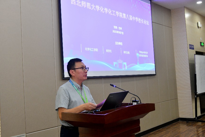 开幕式上,马利邦教授在致辞中系统介绍了学校在人才培养方面的创新实践,并对与会嘉宾表示热烈欢迎。马利邦强调,论坛聚焦化学专业师范生培养、学生发展与就业拓展等核心议题,必将有力推动学校师范生培养质量提升。他指出,师范生培养是西北师大的特色优势,也是学校高质量发展的关键引擎。学校将持续深化与全省中学的战略合作,共同探索卓越中学教师培养的创新模式。
